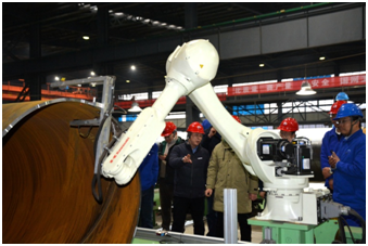 ?近期,山東勝利承接了河南省天然氣洛陽伊川——鄭州薛店項目(一期)管線鋼管生產任務,值此鋼管生產全面展開之際,2023年2月9日,河南省天然氣管網公司企業管理中心副總經理上官景浩等一行9人到山東勝利考察調研。公司總經理趙增強、副總經理張圣光、于國光、李國松、安全總監石晨鐳及相關業務部門負責人與客人進行了深入誠摯的座談。趙總首先代表公司熱烈歡迎河南省天然氣管網公司領導到山東勝利考察調研,并向河南客人介紹了我公司50年的發展歷程、公司現狀、生產設備、人員情況、公司參與國內外重大管線工程生產保供業績以及未來發展規劃等情況,希望河南省天然氣管網公司各位領導通過本次實地考察,進一步了解山東勝利的經營宗旨、銷售理念、生產保供能力及發展前景,希望雙方通過洛陽伊川——鄭州薛店項目(一期)管線生產合作,在省域、城市天然氣管網建設領域進行更加深入廣泛的合作,助力河南省天然氣管網發展建設。河南省天然氣管網公司企業管理中心副總經理上官景浩對我公司50年奮斗取得的優良業績表示贊賞,感謝公司的熱情接待,他代表河南天然氣管網公司對山東勝利2022年中標生產國家管網工程項目表示祝賀,同時也介紹了河南天然氣管網公司的相關情況,對洛陽伊川——鄭州薛店項目(一期)管線鋼管生產合作及雙方今后的進一步合作充滿信心和期待,歡迎山東勝利積極廣泛地參與河南省天然氣管網建設,預祝洛陽伊川——鄭州薛店項目(一期)管線鋼管生產順利成功。隨后,趙總等公司領導陪同客人參觀了公司展廳、實驗室、三分廠、預精焊分廠、防腐保溫分廠1#線。預精焊分廠機組集中控制系統、成品自動測量檢驗機器人等性能先進的生產檢驗設備給客人留下了深刻印象。
