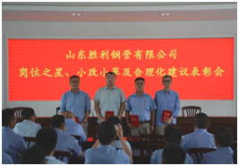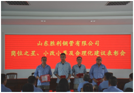 ? 2024年5月17日,山東勝利在集團(tuán)樓四樓會(huì)議室舉行崗位之星、小改小革及合理化建議表彰會(huì),公司中高層管理人員及各部門(mén)代表參加本次表彰會(huì)。會(huì)上,公司授予李承振等5名員工“崗位之星”榮譽(yù)稱(chēng)號(hào),表彰了韓妮等4名提出合理化建議的員工、表彰了楊振鐸等4名小改小革成果顯著的員工。
