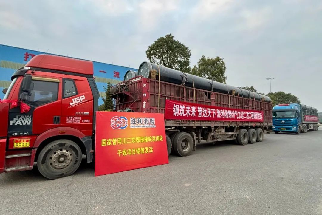 ?2024年12月21日、27日,由山東勝利和湖南勝利湘鋼鋼管承制的國家管網川氣東送二線天然氣管道工程項目首批埋弧焊接鋼管和直縫埋弧焊接鋼管相繼從生產廠順利裝車發運。